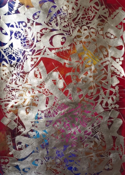 Silver and gold leaf, Acrylic on cardboard
