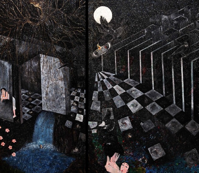 Ink and acrylic on cardboard