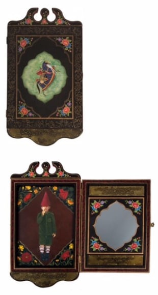 Wood, Nail ,Hobnail ,Enamel ,Iron ,Brass, Glue ,Mirror ,Water Color ,
