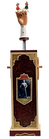 Wood ,Nail ,Enamel ,Brass , Spring ,Fabric ,Glue ,Acrylic Color ,Collage ,hand painting
